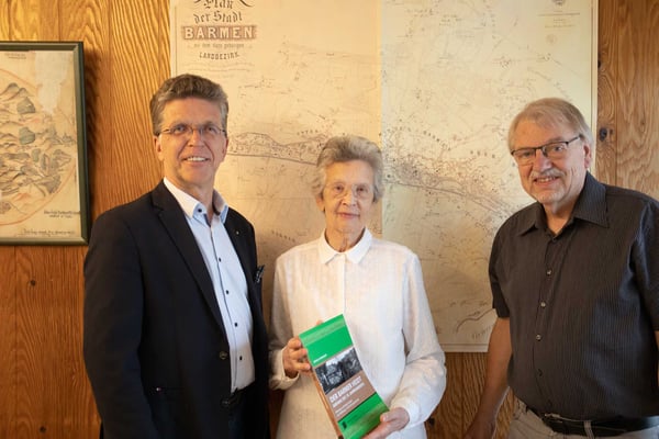 Links: Frau Dr. Ursula Rennhoff mit Verleger Thomas Helbig und dem 1. Vorsitzenden des Heidter Bürgervereins Hermann-Josef Brester